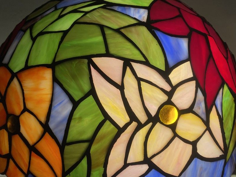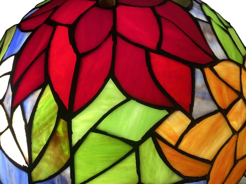 Fazer um abajur a partir de nossas reproduções de originais Tiffany é um processo artesanal. Sua fabricação automatizada não é possível e cada uma das telas deve seguir suas etapas de fabricação. Cortar as opalinas de vidro conforme a amostra usando um rolo, prendê-las com folha de cobre, colocá-las em um molde para poder soldar com estanho (sem chumbo), tingir a lata e limpar. Um processo longo, mas com um resultado espetacular. Oferecemos qualidade e variedade juntamente com o melhor preço do mercado para sua satisfação Material Zinco / Tiffany, Cor Vermelho, Fácil montagem / Reprodução original certificada. Largura 40 Profundidade 40 Altura 62